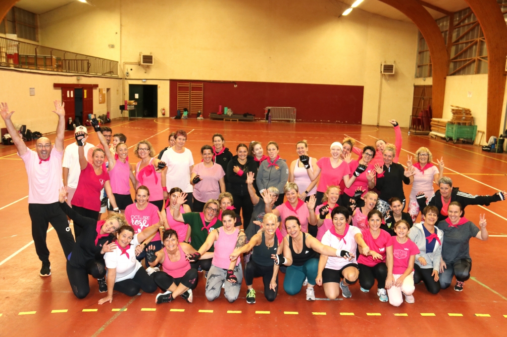 Le club de body karaté avait décidé de marquer sa séance de mardi 21 octobre par un soutien à l’opération Octobre rose. « Il en est ainsi pour toutes les causes de solidarité comme le Téléthon, la journée de la femme » a reconnu Pascal Signat, l’animateur emblématique. « Le body karaté est un sport complet qui allie en musique des mouvements de karaté, des déplacements de fitness, de la cardio et de la coordination ». La séance de mardi 21 octobre avec une cinquante de participants en grande majorité des dames mais aussi quelques hommes, a prouvé qu’aucune connaissance particulière en karaté n’est requise. « Seulement la volonté de dépenser une bonne dose d’énergie dans une pratique sportive tonique et originale. » a insisté Pascal Signat. « Chaque séance se termine par une séance d’abdos-fessiers, d’étirements et d’assouplissements pour un retour au calme ». Les séances ont lieu tous les mardis et jeudis à 19 h 30 dans la salle du parc des sports. Les cours sont dispensés par Martine et Pascal Signat, professeurs diplômés d’État. Renseignements au 06 42 89 44 92.