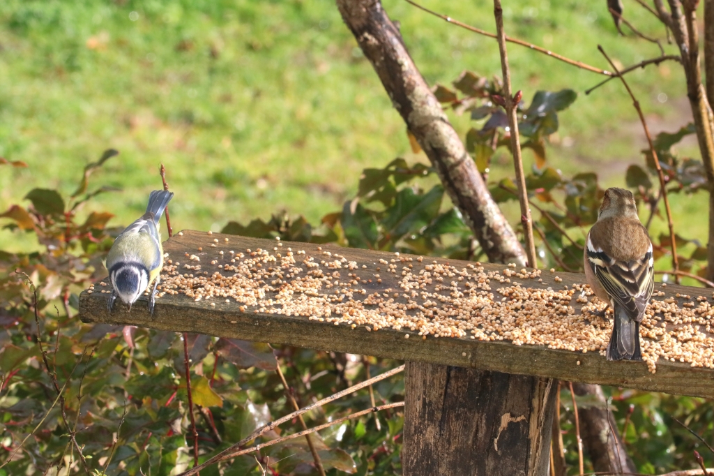 - Vendredi 23 janvier 2026 : " Mon poste d'obervation des passereaux est toujours en place : une mésange bleue et un pinson des arbres partagent le repas !"