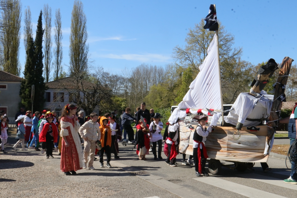 « Le géant pirate du Carnaval devant et tous derrière ! » La magie de Carnaval était bien réelle dans les rues de la bastide du Queyran, vendredi 27 mars. Les écoliers des 4 classes du RPI (1), costumés sur un thème libre mais quand même avec beaucoup de pirates ont défilé avant le jugement sur la place de la gare et le goûter offert par les parents d’élèves. Une exposition autour des livres de Jules Verne était présentée dans une salle municipale par les cours moyens. Le point de départ du défilé était sous la halle au cœur du village. Chaque classe y a interprété un chant. Les écoliers costumés ont pu déguster un goûter offert par l’association locale apicole. Le joyeux cortège a défilé, tambour en tête, avant de se réunir sur l’esplanade de l’ancienne gare où le destin de Monsieur Carnaval était déjà programmé. (1) Les classes du RPI Villefranche-La Réunion-Moncassin-Anzex : à Villefranche-du-Queyran, GS-CP avec la directrice Nathalie Fleury, PS-MS avec Raphaël Peyrouy ; à Leyritz-Moncassin, CM1-CM2 avec Marlène Lalande ; à La Réunion, CE1-CE2 avec David Fievet.