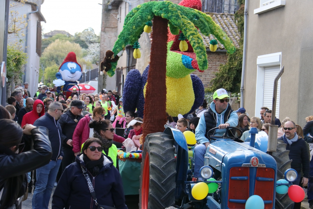 Le retour de la traditionnelle cavalcade était attendu. Le succès rencontré, dimanche 29 mars dans l’après-midi, a confirmé l’attachement de la population à cette animation festive dans les rues du village. La foule était au rendez-vous pour le défilé des quatre chars tout au long du parcours de la caserne des pompiers jusqu’à la fête foraine en passant par la halle au blé, la rue de Biesheim, le carrefour de la mairie. Les deux présidents de l’association organisatrice Festimas, Romain Rivera et Yohann Lagardère étaient même au volant de deux tracteurs qui tiraient les chars fleuris. Comme chars fleuris, le renard et le lapin ont ouvert le défilé, suivis par un magnifique toucan, un schtroumpf et un ours glacier. Les majorettes de Tonneins-Fauillet ont présenté des évolutions en musique et le groupe Zumba de Sandrine a apporté une chaude ambiance pendant plus d’une heure. La surprise des organisateurs a été très appréciée par les petits et les grands au milieu de la fête foraine : des canons à bonbons. Rendez-vous est pris pour la fête des Rameaux 2027.